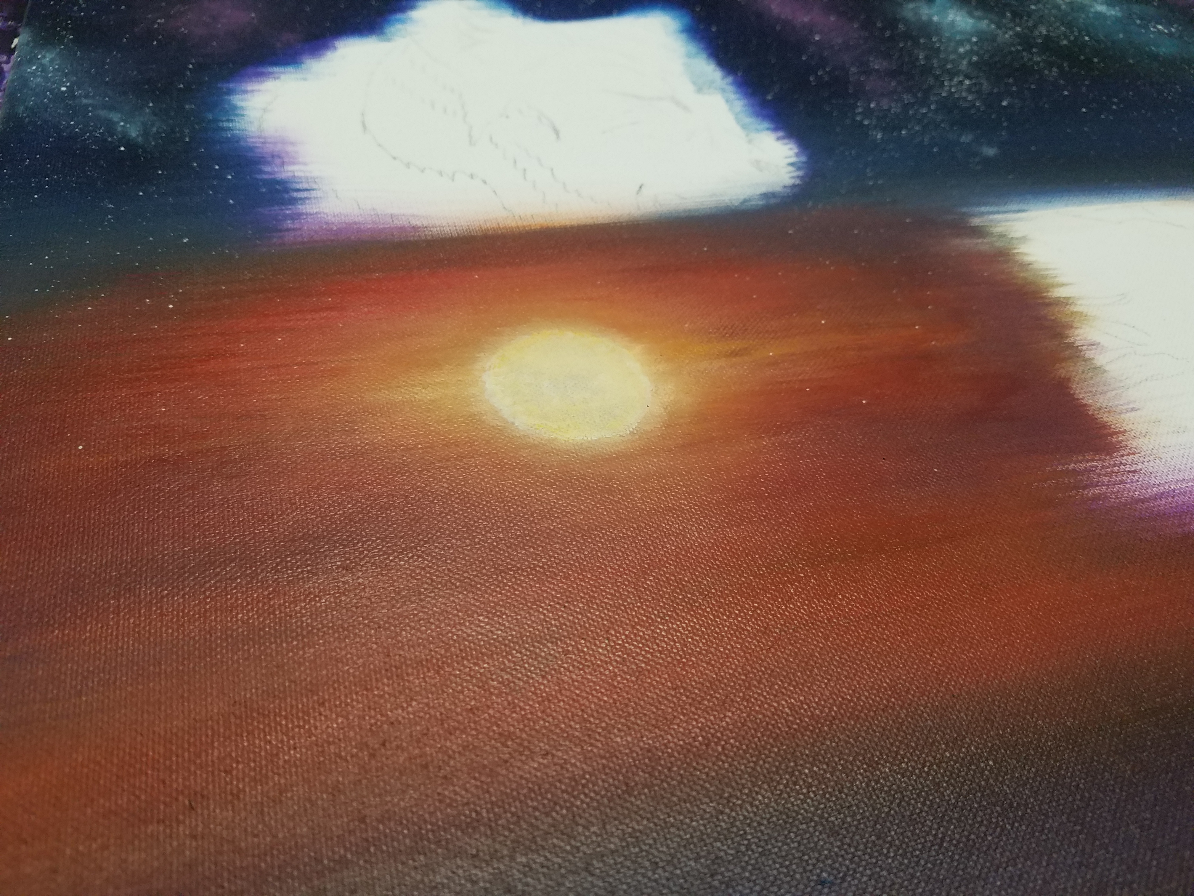 星空から夕焼け空に上手くグラデーションを繋げていき