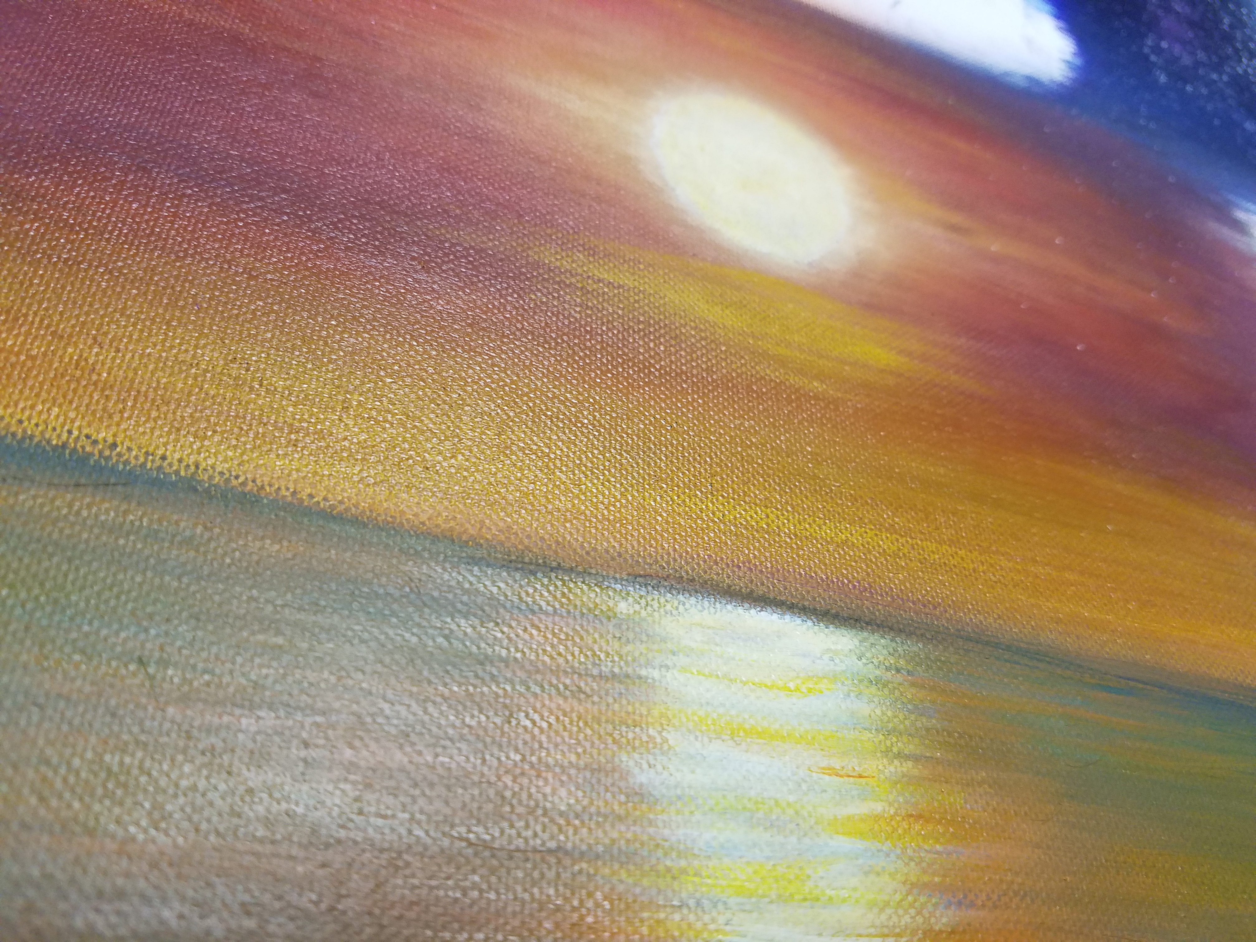 そして、太陽から海面へと延びる光の煌めきを描きます。