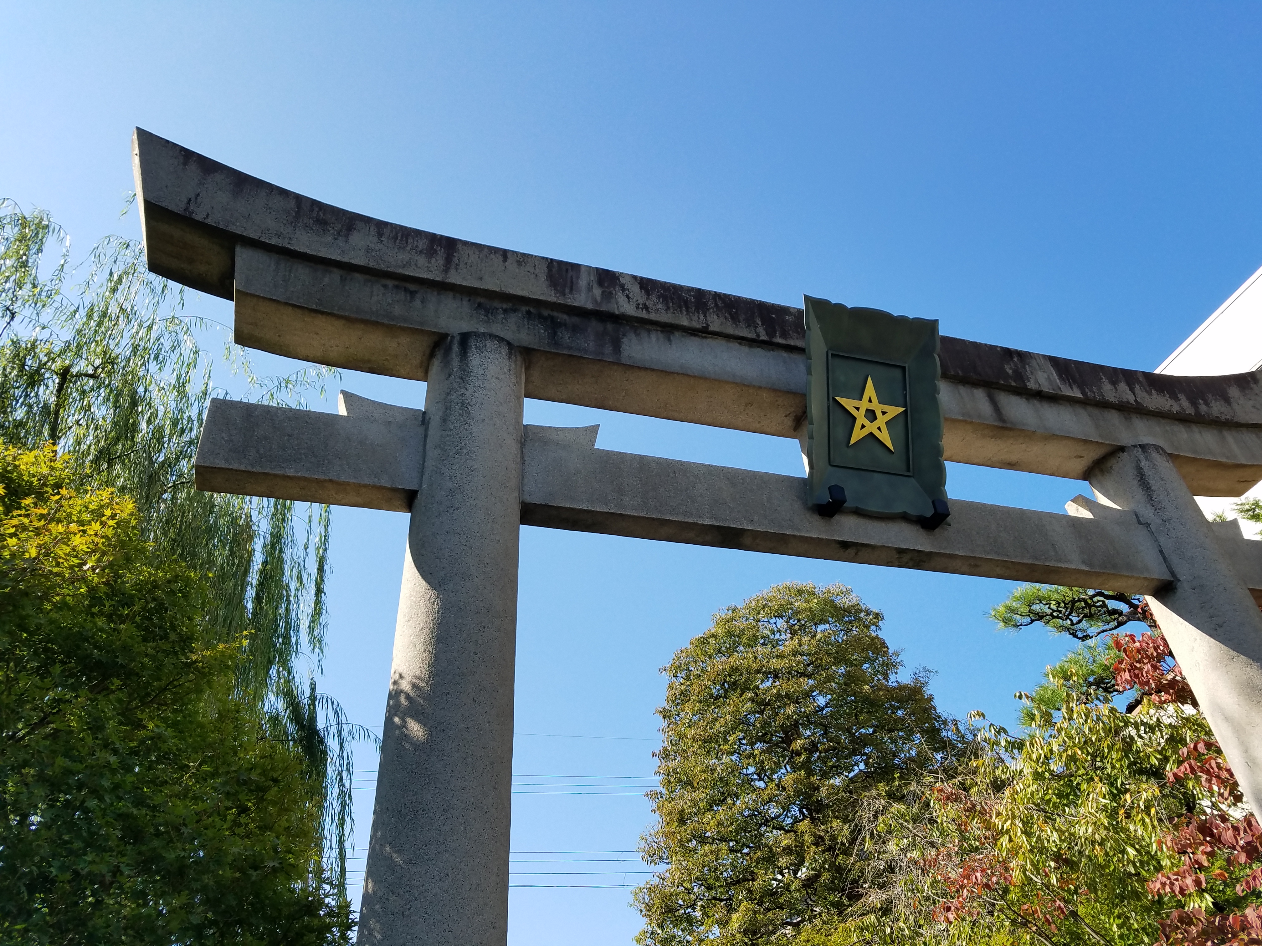 入り口の一の鳥居には、清明神社のシンボルでもある星が☆