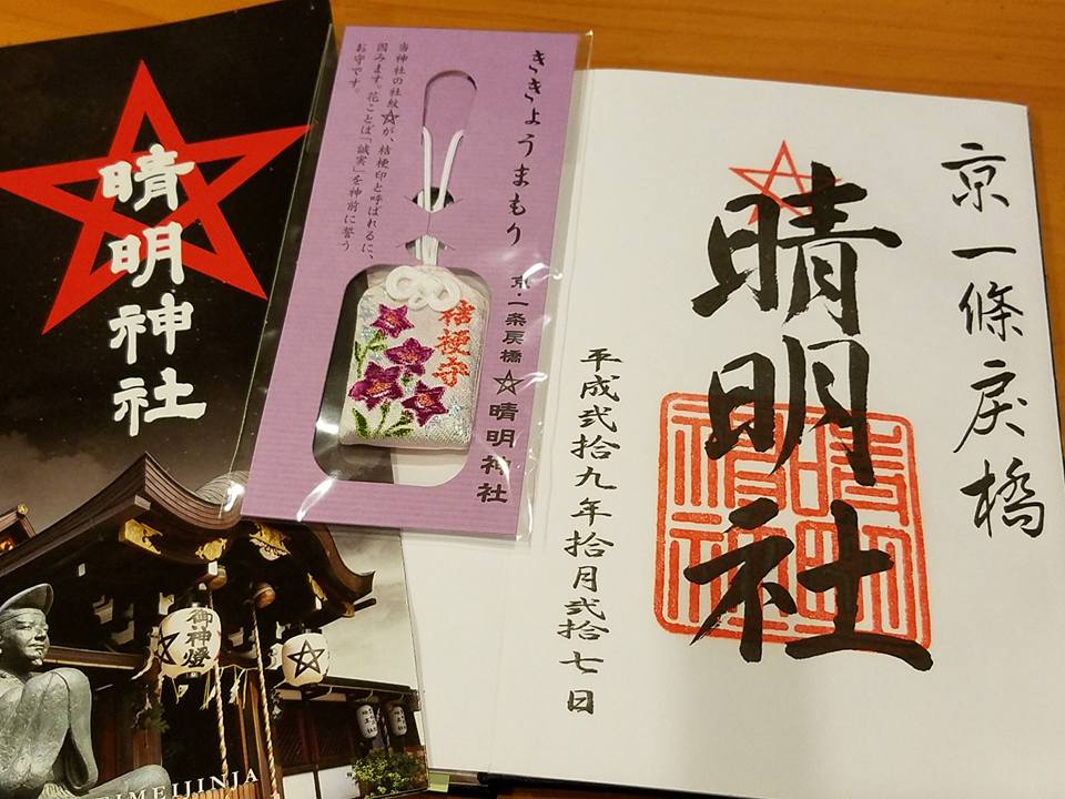 橋を渡った先には、色々な清明神社グッズが売ってある